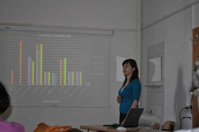 Boér Ágnes (Babeş-Bolyai Tudományegyetem) versenyző előadása a Környezettudomány és vízminőség tagozatban. A szerző kiemelt különdíjat kapott